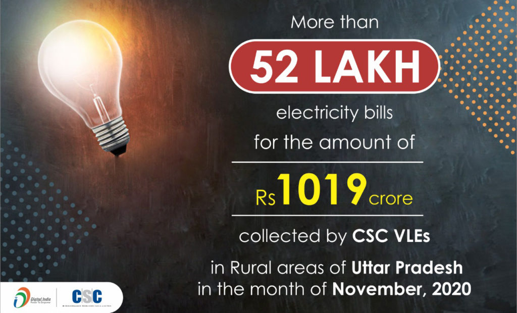 According to the latest tweet by CSE “More than 52 Lakh electricity bills for the amount of Rs. 1019 Crore collected by CSC VLEs in Rural Areas of Uttar Pradesh in the month of November, 2020.”