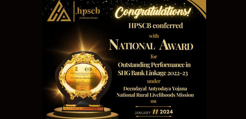 Himachal Pradesh State Cooperative Bank brought laurels to the cooperative sector by bagging a ‘National Award’ for the outstanding performance in the SHG Bank Linkage 2022-23 under Deendayal Antyodaya Yojana National Rural Livelihoods Mission at New Delhi.