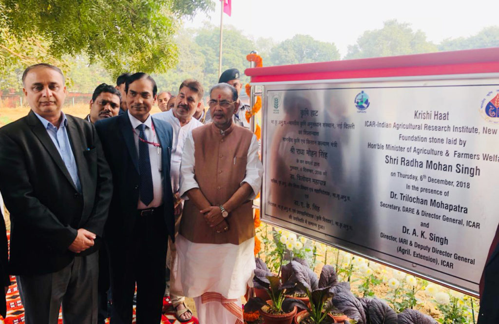 Union Agriculture Minister Radha Mohan Singh Minister laid the foundation stone of Pusa Kisan Haat in ICAR’s Agricultural Technology Information Centre (ATIC) in New Delhi, on Thursday. The Haat will be built across 2.5 acres in which 60 stalls measuring 3m x 3m will be erected.