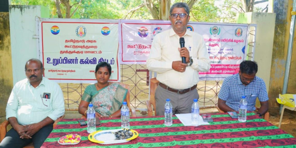 The event was coordinated by Mrs. R. Sakthi Pemila, Sub-Registrar of Tiruchendur Circle. S. Sorna Selvam, Cooperative Union Assistant, delivered the welcome address, while A. Sam Daniel, Cooperative Sub-Registrar/Secretary of Thoothukudi District Cooperative Union, addressed members on loan facilities as well as their rights and responsibilities.
