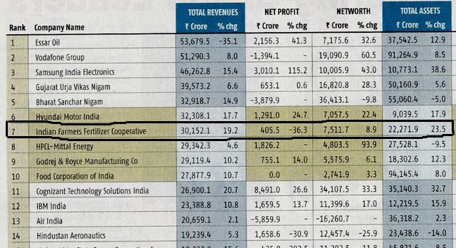 Those ranked above IFFCO included BSNL, Gujarat Urja Vikas Nigam, Huyndai Motors and others. Last year too IFFCO ranked at the same place in the BS rating.