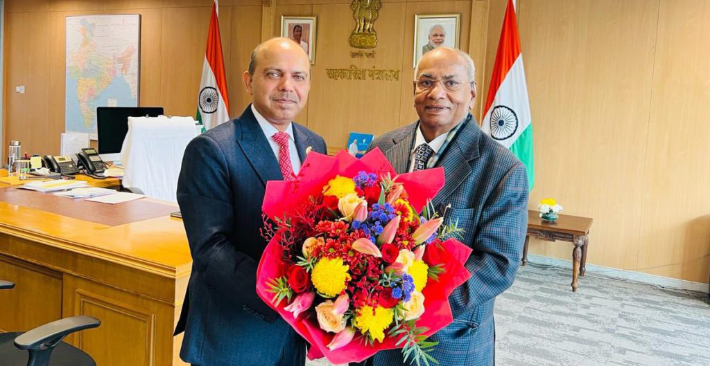 IFFCO Managing Director Dr U S Awasthi met Ashish Bhutani, the newly appointed Secretary, Union Ministry of Cooperation, at his office on Wednesday.