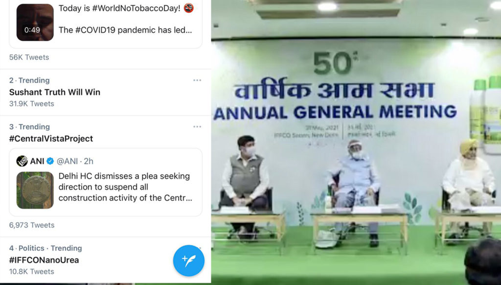 The Nano urea trended at 4th rank. While WHO’s “#notobaccoday” was at the first place, “#Sushanttruthwillwin” and “#Central Vista” trended at 2nd and 3rd place respectively.