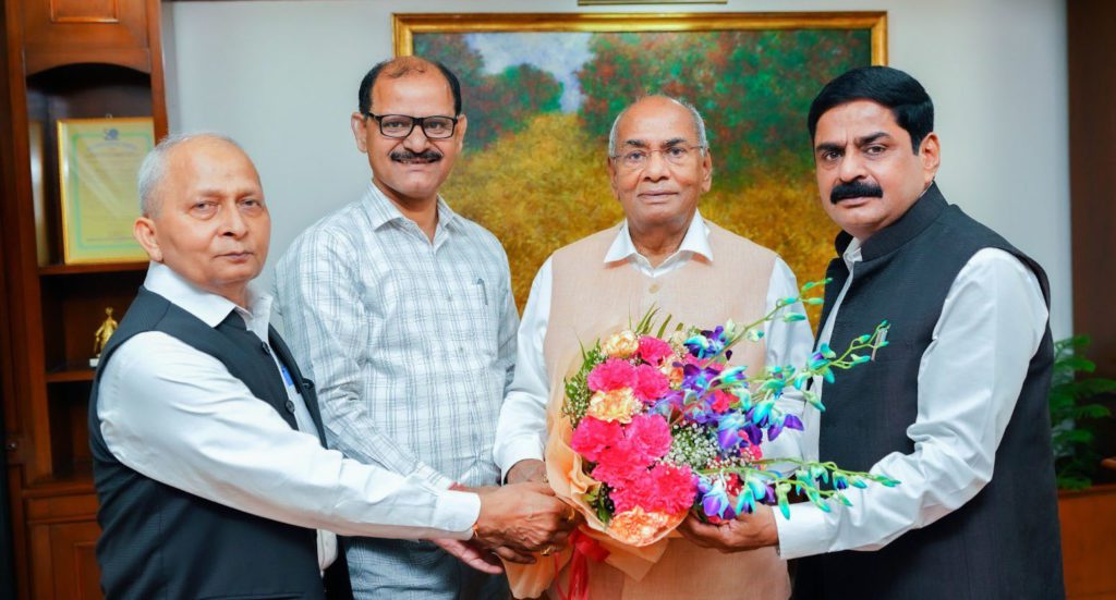 AIIOF Chairman Jitendra Tiwary and AIIEF Chairman Brajesh Kumar congratulated Dr U S Awasthi in his office at the IFFCO headquarters. IFFCO Marketing Director Yogendra Kumar was also present on this occasion.