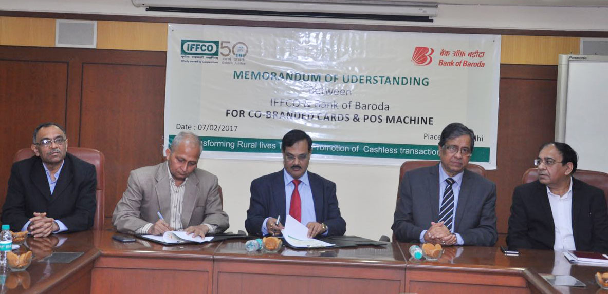 The MOU ceremony was attended by other senior officials from Bank of Baroda including Mr Gupta, GM, Rajesh Arora, AGM and others and from IFFCO MR Patel, Director (IT), Kamal Verma, ED (Finance) and other officials.