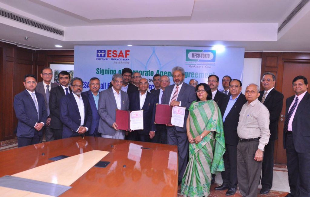 IFFCO-Tokio, a subsidiary of fertilizer giant IFFCO has entered into a strategic partnership with Kerala-based ESAF Small Finance BanK, a scheduled bank last week. The partnership is aimed at enabling customers to protect their assets and health, tweeted IFFCO MD Dr U S Awasthi.