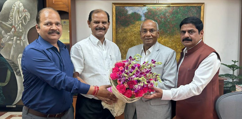 AIIOF Chairman Jitendra Tiwary and AIIEF Chairman Brajesh Kumar congratulated Dr U S Awasthi in his office at the IFFCO headquarters.