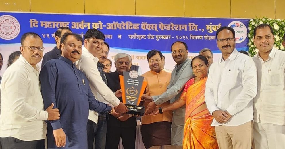The award, recognizing the bank’s impressive financial performance in FY 2023–24 and continued progress in FY 2024–25, was presented to the bank’s leadership by MLC Pravin Darekar, NUCFDC Chairman Jyotindra Mehta, and other dignitaries.