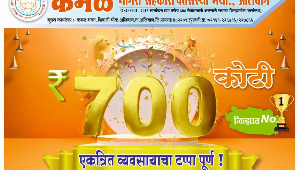 Raigad (Maharashtra)-based Kamal Nagari Sahakari Patsanstha has added a significant milestone by achieving a total business mix of Rs 700 crore.