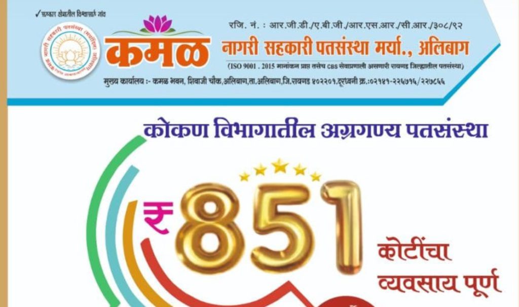Maharashtra’s Alibaug-based Kamal Nagari Sahakari Patsanstha Maryadit has achieved a remarkable milestone by crossing a total business of Rs 851.03 crore.