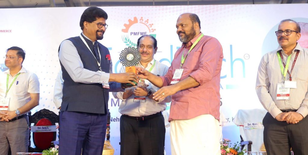 The award was presented by Kerala’s Minister for Law, Industries and Coir, Sri P. Rajeeve, to Kerala Bank’s Chief Executive Officer Jorty M. Chacko, during ‘Food Tech 2025’.
