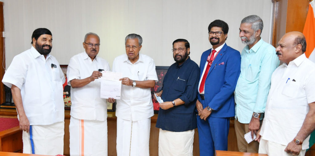 Kerala StCB President Gopi Kottamurikkal handed over the cheque to Chief Minister Pinarayi Vijayan in the presence of the bank’s CEO Jorty M. Chacko, Kerala’s Cooperation Minister V. N. Vasavan, and other dignitaries.