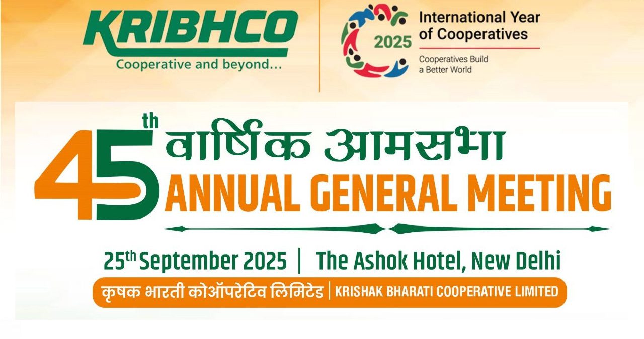 The Krishak Bharati Cooperative Limited (KRIBHCO) is set to hold its 45th Annual General Body Meeting (AGM) tomorrow, September 25, 2025, at the iconic Ashok Hotel, Delhi.