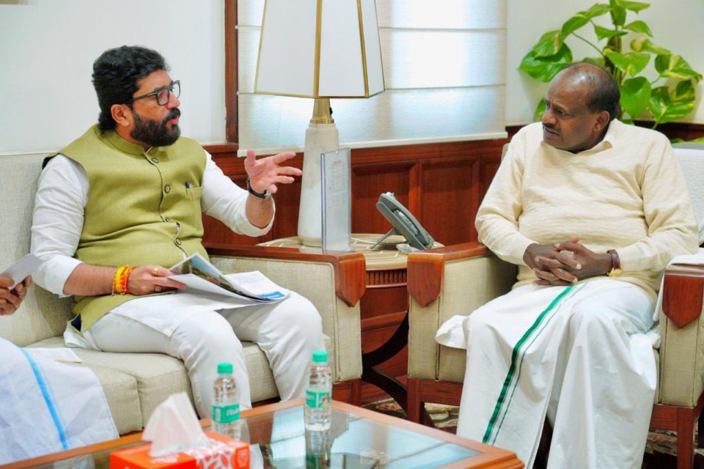 Union Minister for Heavy Industries H.D. Kumaraswamy held a detailed discussion with Union Minister of State for Cooperation Murlidhar Mohol at Parliament House on issues related to cooperative sugar mills and milk dairies in Karnataka.
