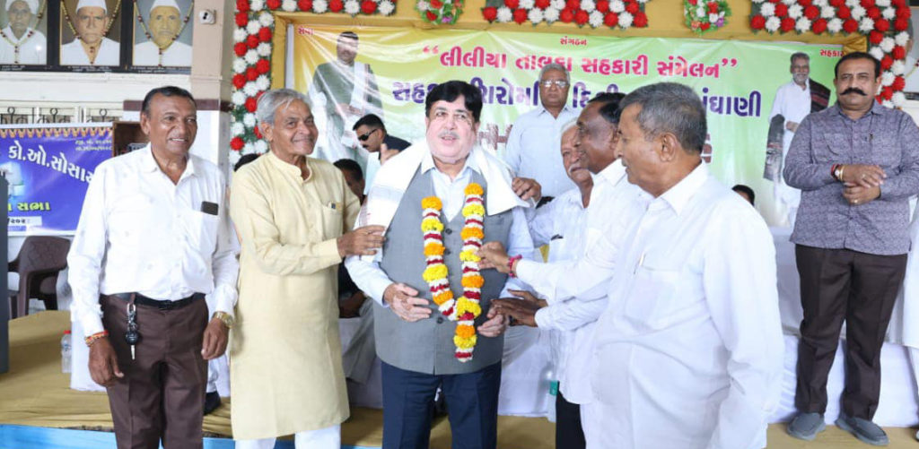 During the annual general meeting of Liliya Mota Cooperative Society, a felicitation and gratitude ceremony was organized after the unopposed appointment of Dilip Sanghani as the IFFCO president.