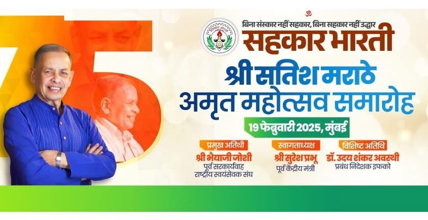 To mark this special occasion, Sahakar Bharati will honor Marathe with an Amrit Mahotsav at SwamiNarayan Mandir, Dadar, today on February 19, 2025, at 11 a.m.