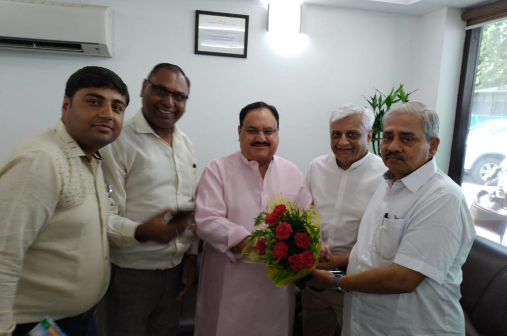Sahakar Bharati leaders were one of the firsts from the cooperative sector to greet the former health minister J.P.Nadda who has been appointed as the BJP working president recently.