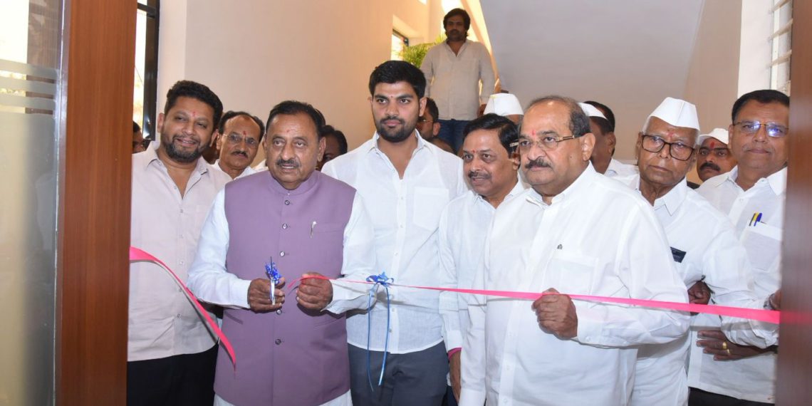 Maharashtra Water Resources Minister Radhakrishna Vikhe Patil and Cooperation Minister Babasaheb Patil jointly inaugurated the Loknete MLA Shivaji Kardile Auditorium at the Taluka Development Officer’s office premises in Chahurana Budruk. The occasion also marked the renovation of the main office building of the Ahilyanagar District Central Cooperative Bank (DCCB) and the formal launch of its newly established e-lobby.