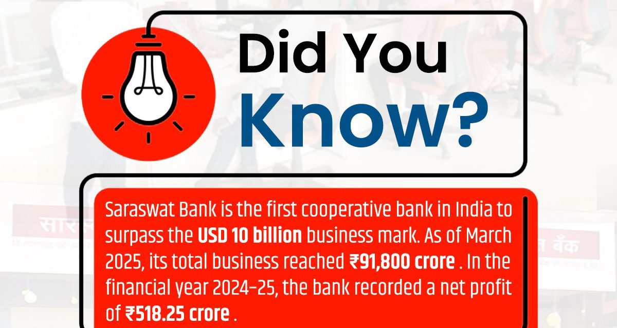 Lauding the bank’s legacy and innovation, the Ministry posted: “Established in 1918, Saraswat Bank stands as a symbol of India’s proud legacy. With 311 branches and over 350 ATMs across 8 states, it is the largest urban cooperative bank in the country.”