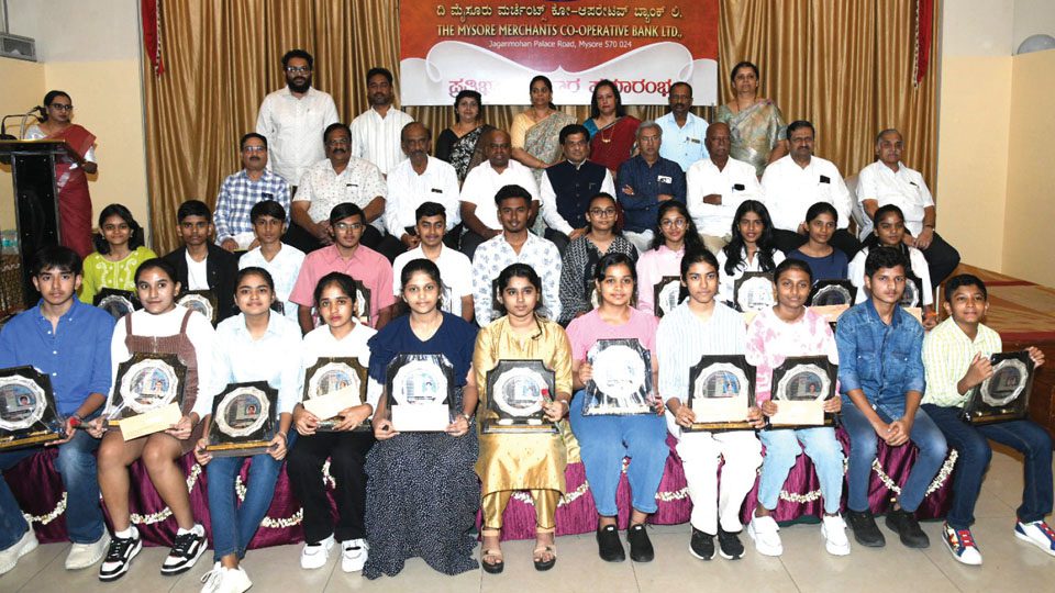 The Mysore Merchants Cooperative Bank organised a Pratibha Puraskar ceremony recently to honour over 46 meritorious students who excelled in the SSLC and PUC exams, media reports say.
