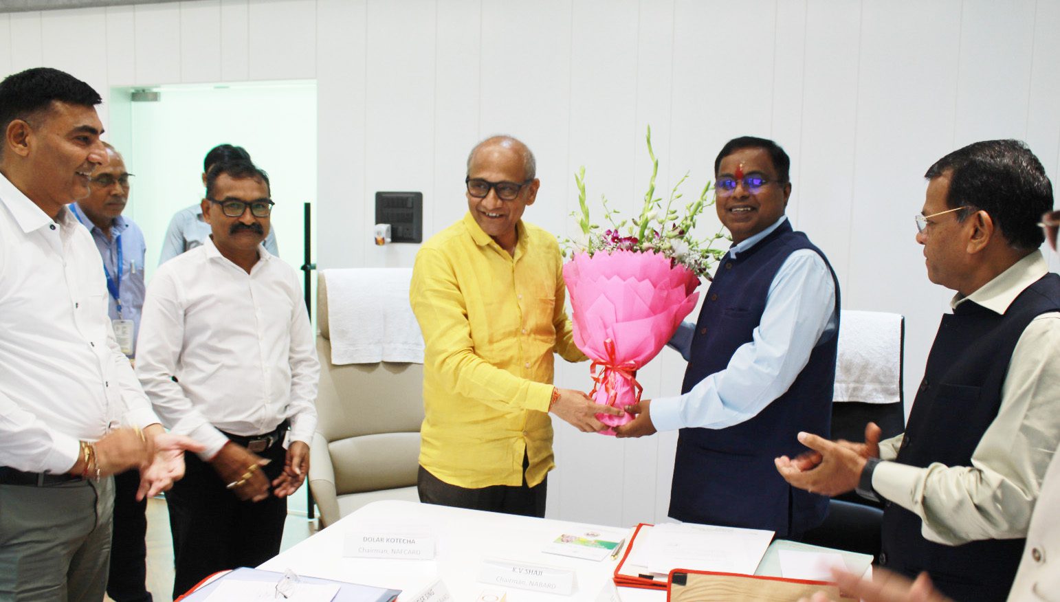 Nabard Chairman K V Shaji has recently visited the headquarters of the Gujarat State Cooperative Agriculture & Land Development Bank, which is popularly known as Kheti Bank.