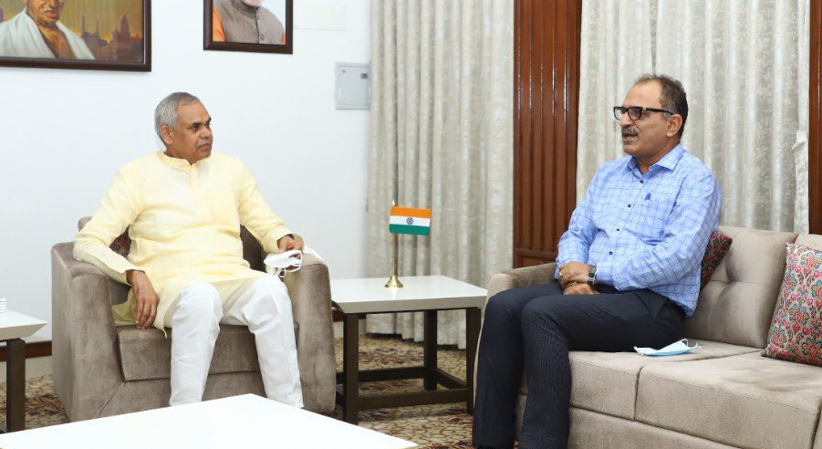 During his visit to Gujarat, the Agri Cooperative Nafed Managing Director Sanjeev Chadha met state governor Acharya Devvrat at Rajbhawan on Tuesday.