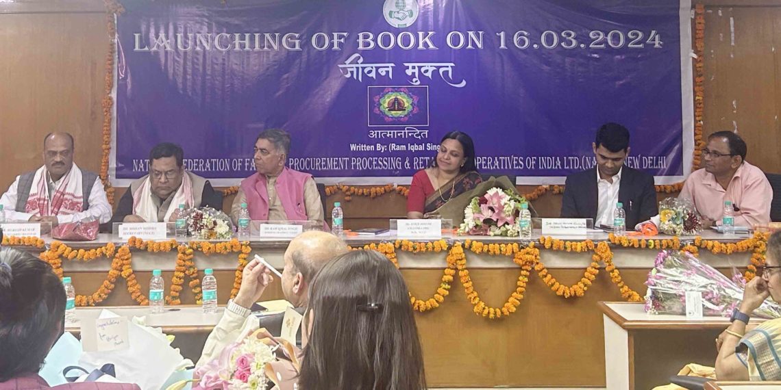 National Cooperative Consumers’ Federation (NCCF) Managing Director Anice Joseph launched a spiritual book ‘Jeevan Mukt’ written by Ram Iqbal Singh, a well known man in cooperative circles and Nacof Chairman.