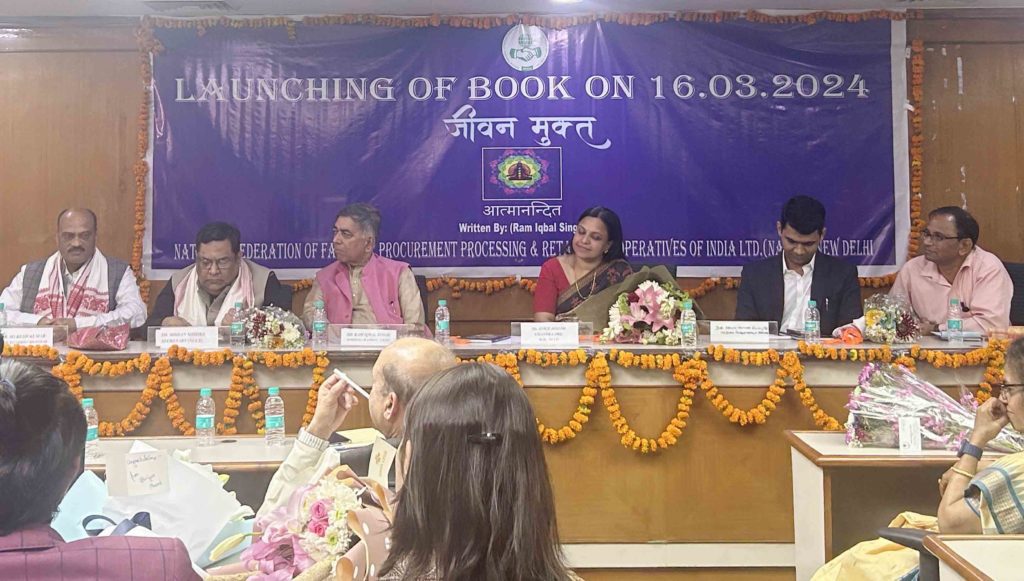 National Cooperative Consumers’ Federation (NCCF) Managing Director Anice Joseph launched a spiritual book ‘Jeevan Mukt’ written by Ram Iqbal Singh, a well known man in cooperative circles and Nacof Chairman.
