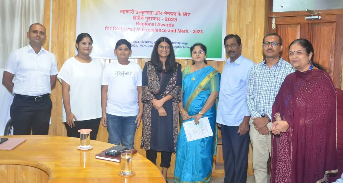 In Port Blair, the ceremony took place on June 24, 2024, at the RCS Office Conference Hall. The Seamen Cooperative Society Ltd. and the Jagrook Security Service Cooperative Society Ltd. were presented with the Excellence-2023 awards by Ms. Nandini Maharaj, Special Secretary (Cooperation)-cum-RCS.