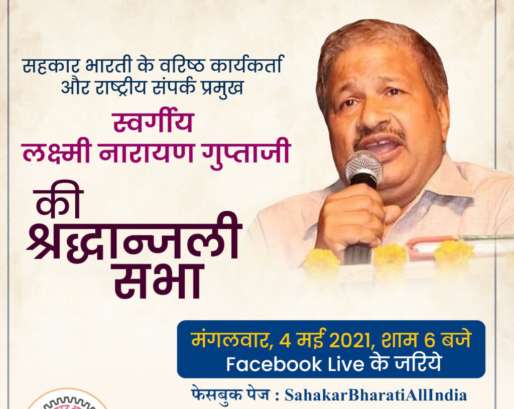 A communication from Sahakar Bharati National General Secretary Uday Joshi read “Shradhanjai Sabha for Late Media Pramukh Late Laxmi Narayan Gupta has been kept on Tuesday at 6 PM through Facebook Live”.