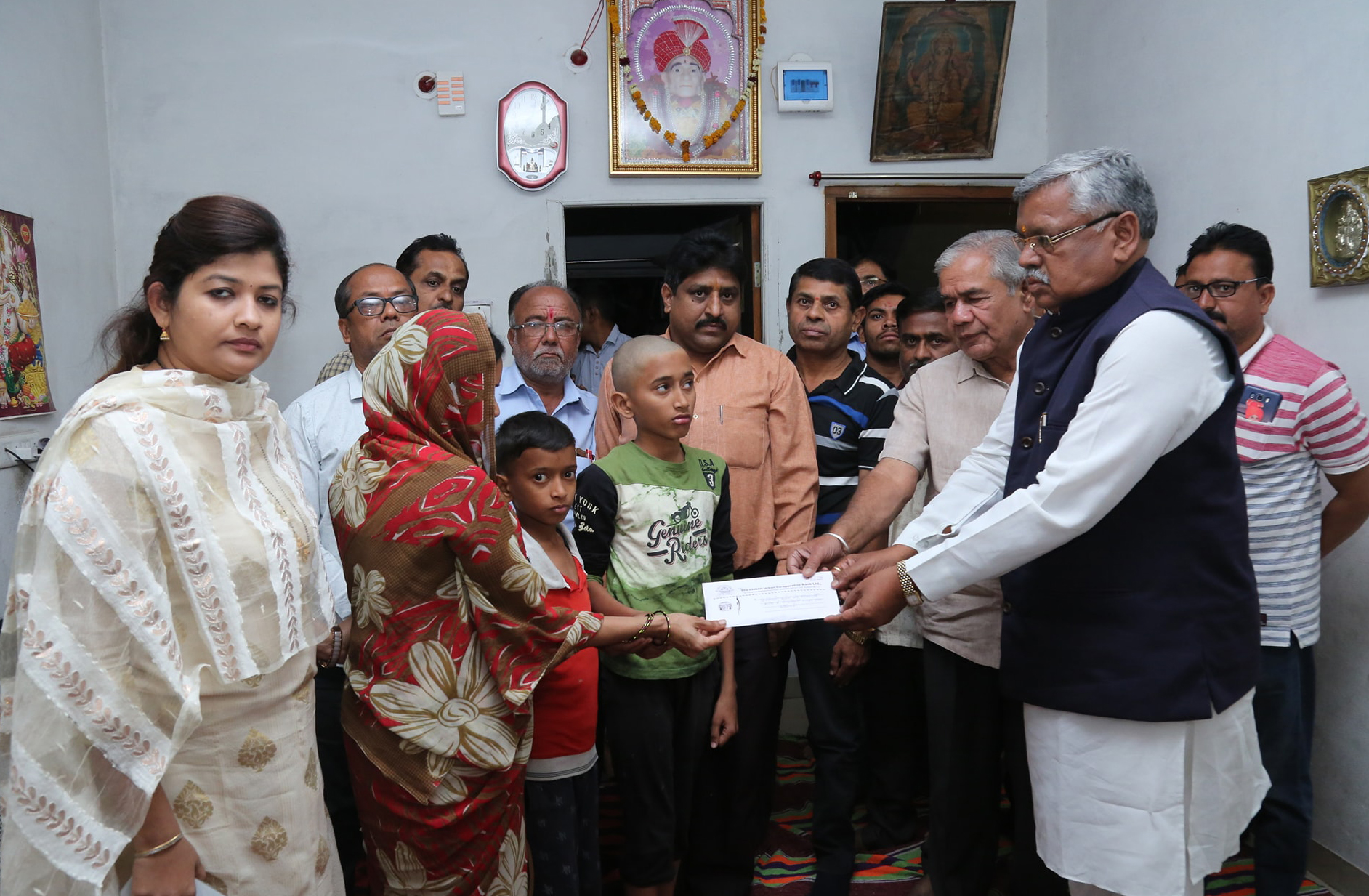The bank Chairman Satish Gupta handed over the cheque to the relatives of the CRPF jawans killed. It is to be noted that the employees of Chikhli UCB have contributed their one day salary to the family members of the CRPF personnel who lost their lives in the Pulwama attack.
