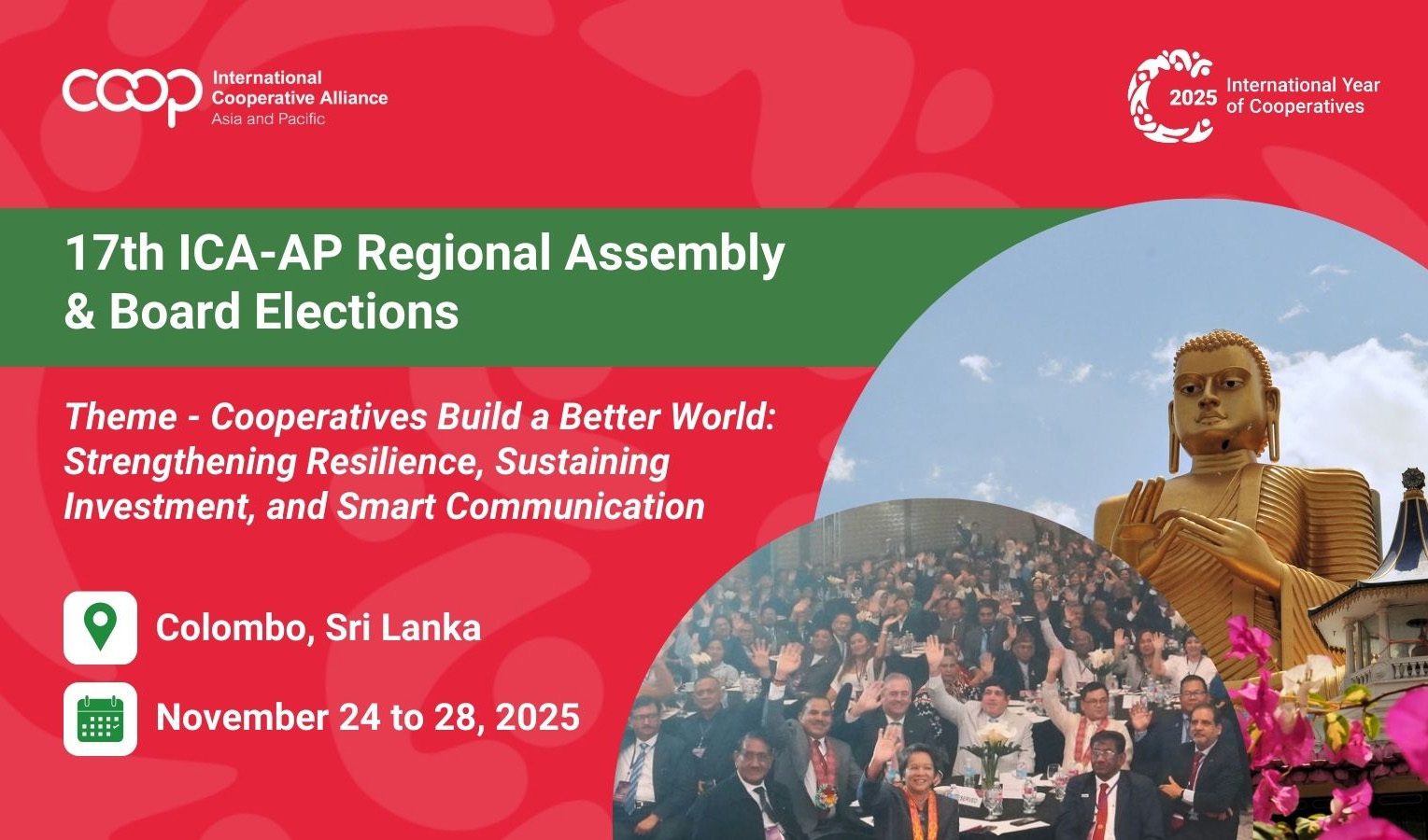 The International Cooperative Alliance Asia-Pacific (ICA-AP) has officially opened registrations for its 17th Regional Assembly, scheduled to take place from 24 to 28 November 2025 at Cinnamon Lakeside Hotel, Colombo.