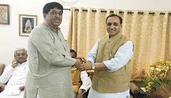 Talking to Indian Cooperative Sanghani said the newly appointed minister of state for agriculture Purshottam Rupala and other ministers also felicitated the Chief Minister when leaders from the BJP met Governor Mr O P Kohli to stake their claim for forming the new government.The meeting lasted half an hour, Sanghani added.