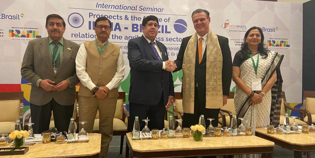 The International Seminar on prospects and future of India-Brazil relationship in the agribusiness sector was attended by Parshottam Rupala, Union Cabinet Minister of Fisheries, Animal Husbandry and Dairying from India and H.E. Carlos Favaro, Minister of Agriculture and Livestock of Brazil, among others.