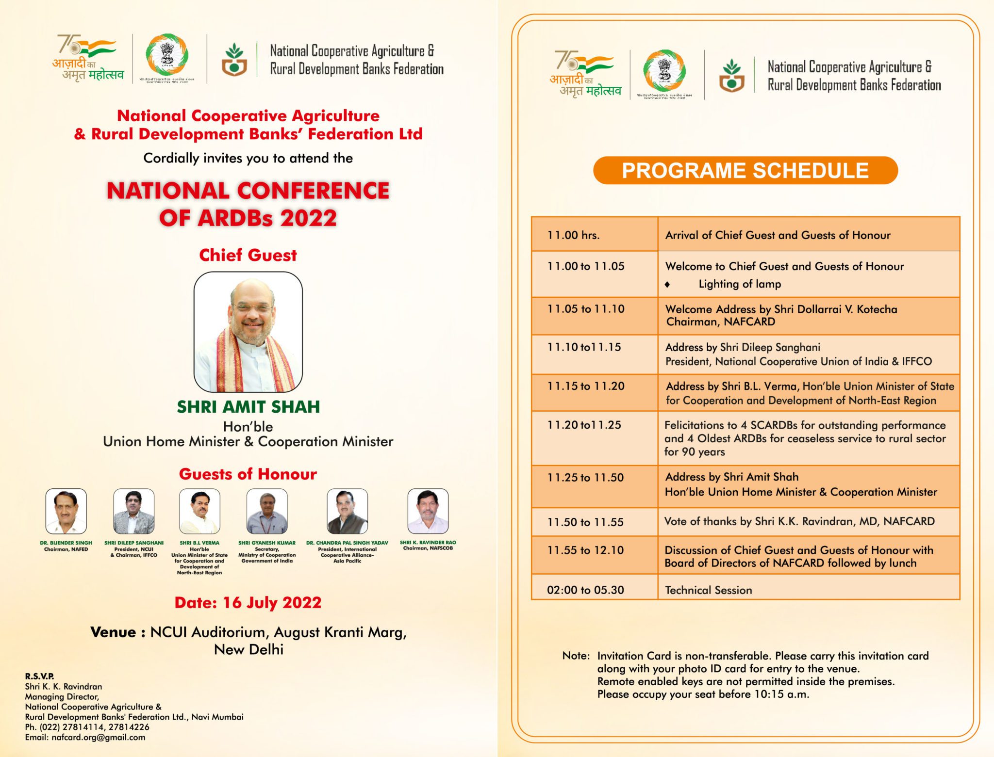 National Cooperative Agriculture and Rural Development Banks Federation (NAFCARD) is organizing a National Conference of ARDBs at the NCUI auditorium on Saturday, which is going to be inaugurated by Union Home and Cooperation Minister Amit Shah.