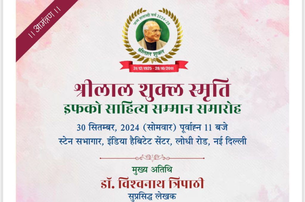 As reported earlier, noted storyteller Shri Chandrakishore Jaiswal has been selected for the Shrilal Shukla Memorial IFFCO Literary Award, while the inaugural Shrilal Shukla Memorial IFFCO Young Literary Award has been awarded to Ms. Renu Yadav.