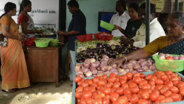 The Cooperative Department of Tamil Nadu is buying vegetables from far away locations and selling them at cheap rates through Farm Fresh outlets to stabilize price development, reports Hindu.
