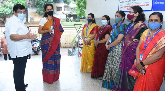 She was welcomed by women employees of the bank in the presence of Anaskar who has recently been nominated as the Chairman of Maharashtra State Cooperative Council. She acquainted herself with the activities of the bank.