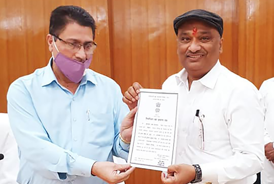 Bihar Vidhan Sabha Secretary Bateshwar Nath Pandey gave the Certificate of election to Biscomaun Chairman Sunil Kumar Singh declaring him elected unopposed as the Member of Legislative Council on Monday