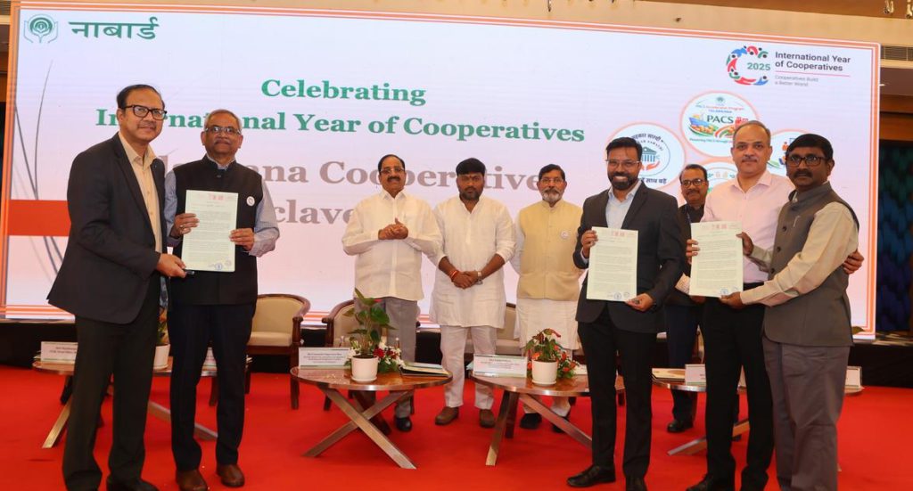 Strengthening cooperative-based farm collectives in Telangana, equity grants of Rs 15 lakh each were distributed on December 29, 2025, to 12 Primary Agricultural Credit Society–Farmer Producer Organisations (PACS–FPOs) formed this year. The programme was inaugurated by Tummala Nageswara Rao, Minister for Agriculture, Marketing, Cooperation, Handlooms & Textiles, Government of Telangana.