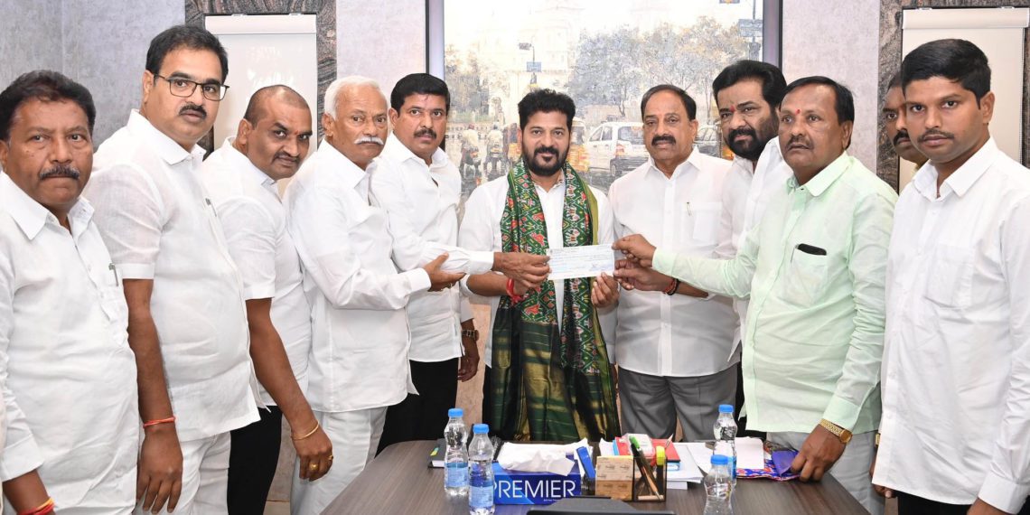 The cheque was personally handed over by the bank Chairman Marneni Ravindar Rao to the state Chief Minister Revanth Reddy at his residence in Jubilee Hills on Wednesday.