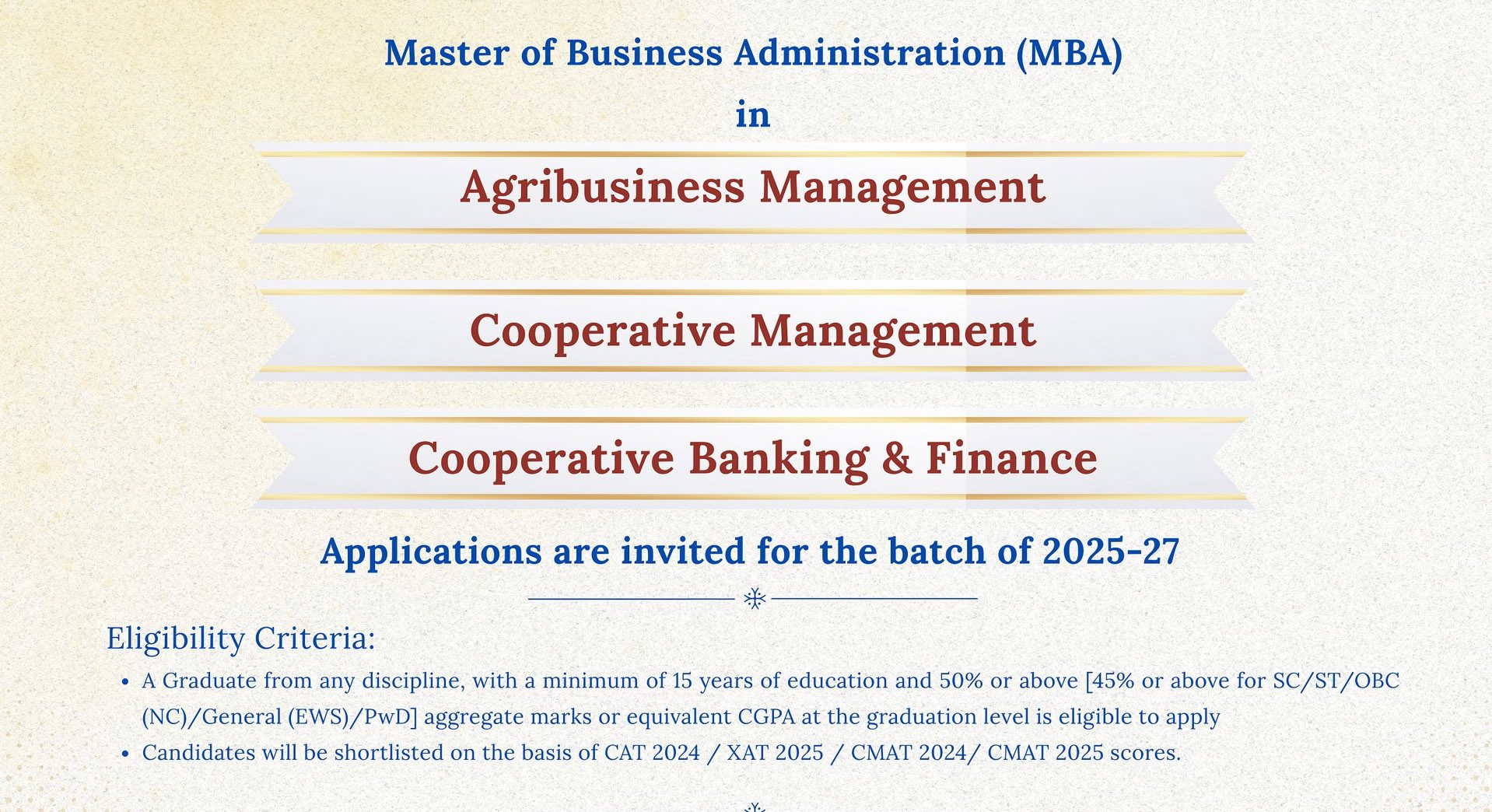 In a landmark move to strengthen the cooperative sector with skilled leadership, “Tribhuvan” Sahakari University has announced admissions for its MBA programme for the academic session 2025–27. This initiative offers a golden opportunity for students aspiring to make a meaningful career in the cooperative and development sectors.