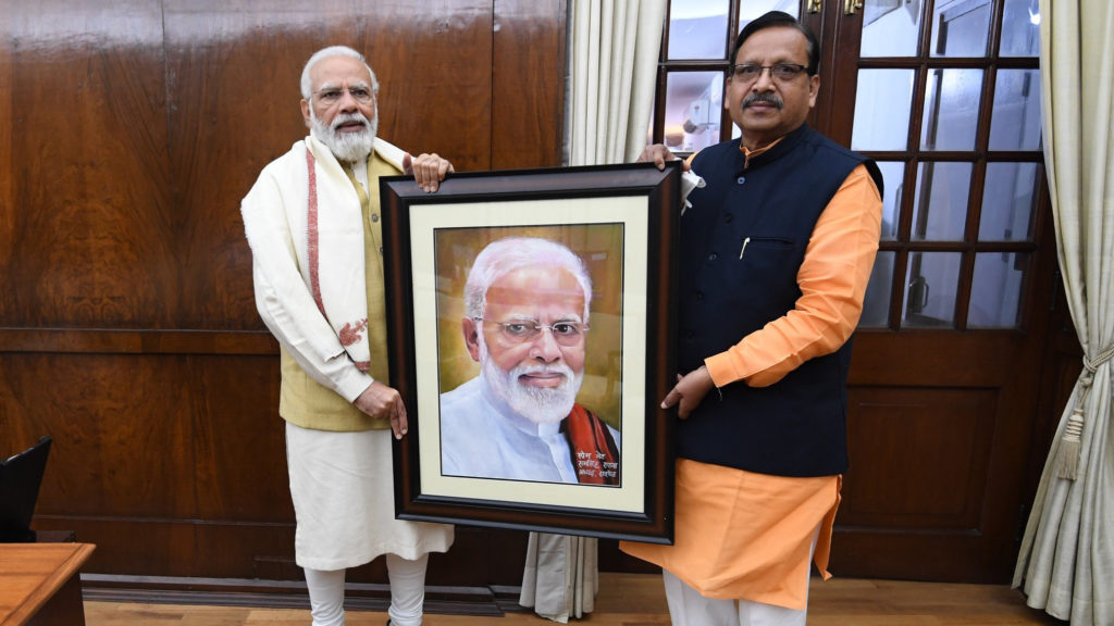 The tribal cooperative-Trifed Chairman Ramsinh Rathwa, who hails from Gujarat, met Prime Minister Narendra Modi on Thursday and gifted him a painting made by the Tribal Artist Rameshwar Munda.