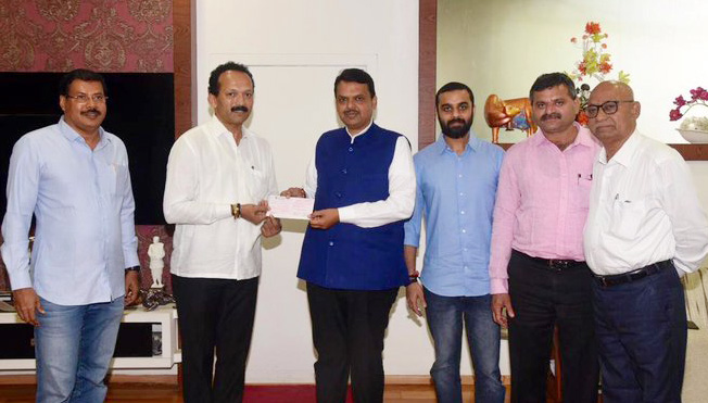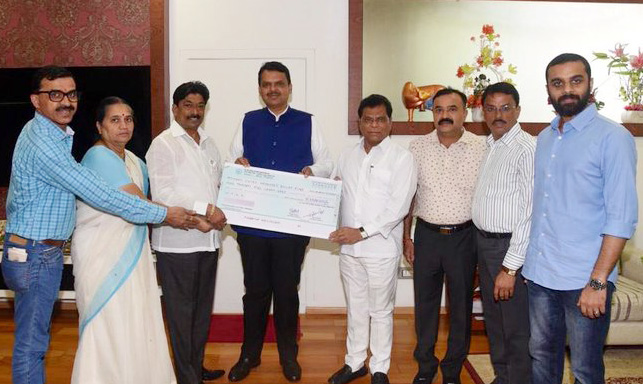 Thane based Thane District Central Cooperative Bank has handed over a cheque of Rs 25 lakh to the Chief Minister Devendra Fadnavis last Saturday.