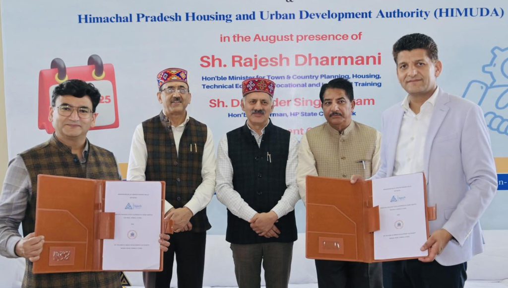 The MoU was signed in the presence of Minister for Town & Country Planning, Housing, Technical Education, Vocational and Industrial Training, Rajesh Dharmani, along with HPSCB Chairman Davender Shyam, HIMUDA Vice Chairman Er. Yashwant Chhajta, HIMUDA CEO Surender Vashisht, Bank Managing Director Sharwan Manta, and senior officials from both the Bank and HIMUDA.