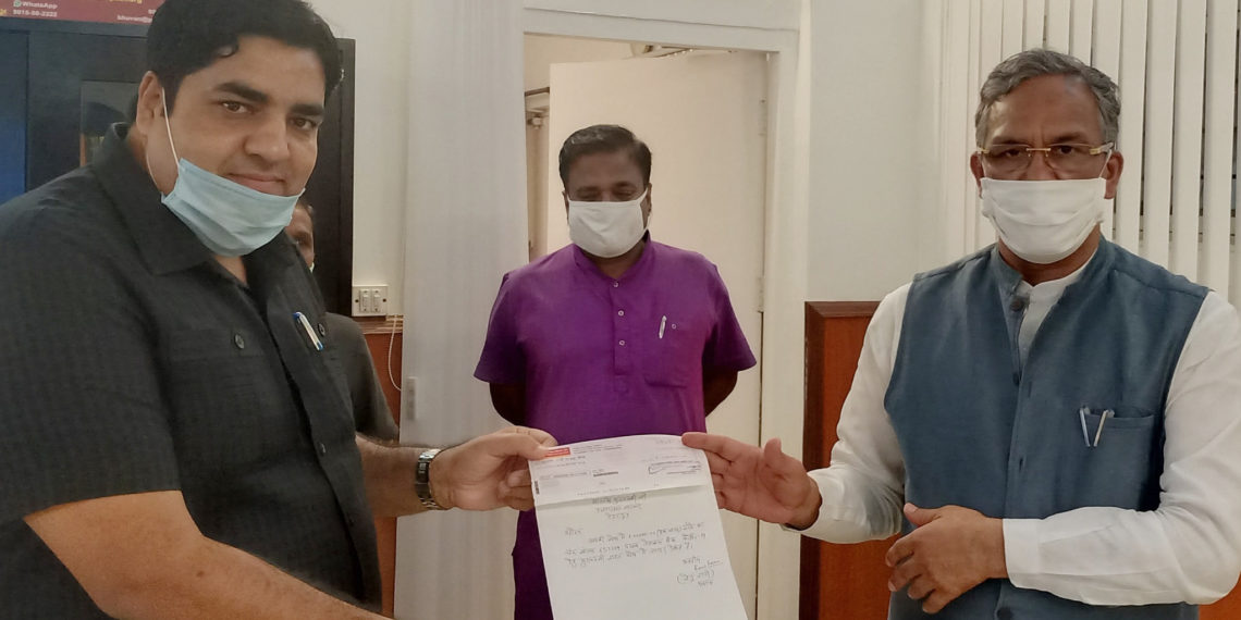 Uttarakhand based Libberheri Cooperative Sugarcane Development Committee, Manglaur Director Susheel Rathi has given a cheque of Rs 1 Lakh to State Chief Minister Trivendra Singh Rawat on Tuesday at the Chief Minister office.
