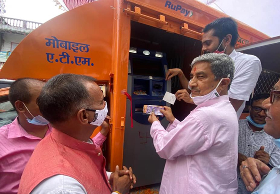 In a bid to give banking services to remote areas, Uttar Pradesh Cooperative Minister Mukut Bihari Verma flagged off the mobile ATM van of Bahraich District Cooperative Bank recently.