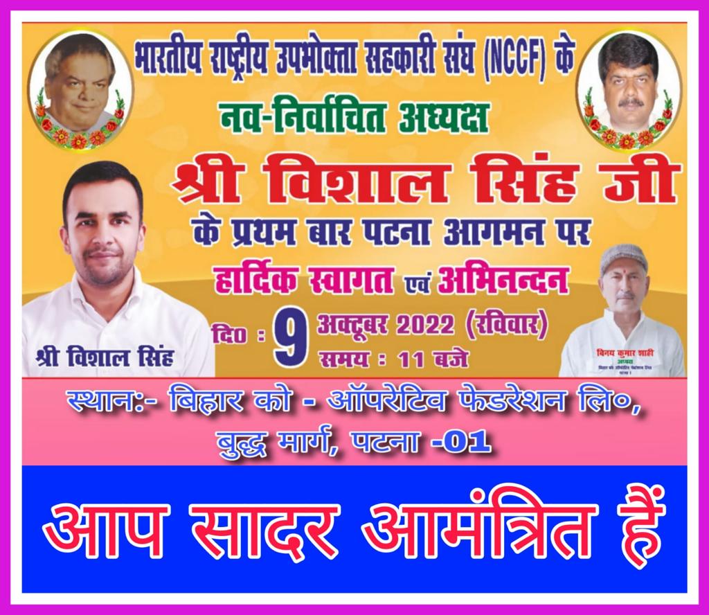 In the recent elections of NCCF, Singh was elected unopposed with his deputy Yashpal Singh Yadav. Vishal Singh is the son of veteran cooperator Late Ajit Singh and the grandson of the famous Tapeshwar Singh.