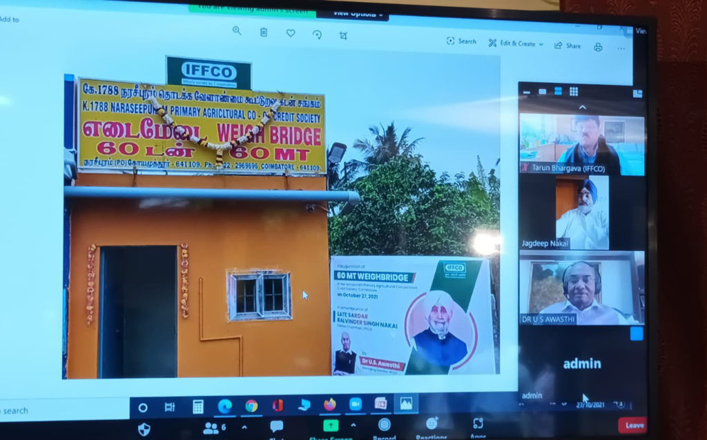 Sharing the news through the Twitter wall, the IFFCO MD wrote, It was a pleasure to inaugurate the dedication of 60 MT weighing bridge by Naraseepuram Primary Agricultural Cooperative Credit Society, Coimbatore in remembrance of Late Sardar Balavinder Singh Nakai Ji, Former Chairman of #IFFCO. Sh. @OVRCHANDRAN , Director IFFCO was also present”.