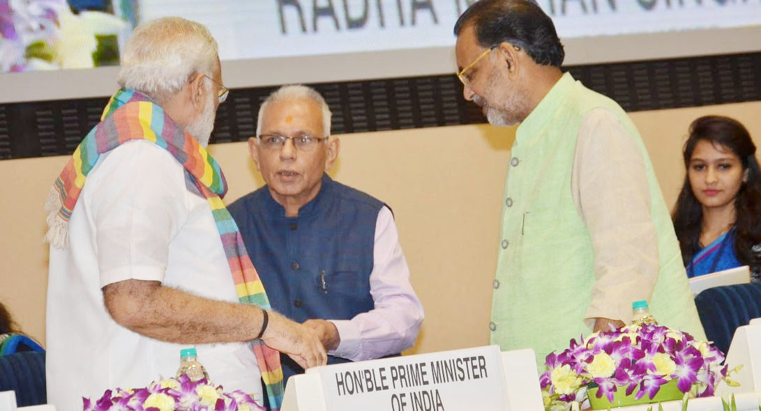 Present on the stage were Union ministers of agriculture Radha Mohan Singh, state ministers of agriculture and Jyotindra Mehta, President of Sahakar Bharati.